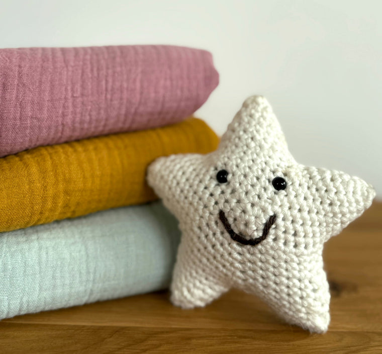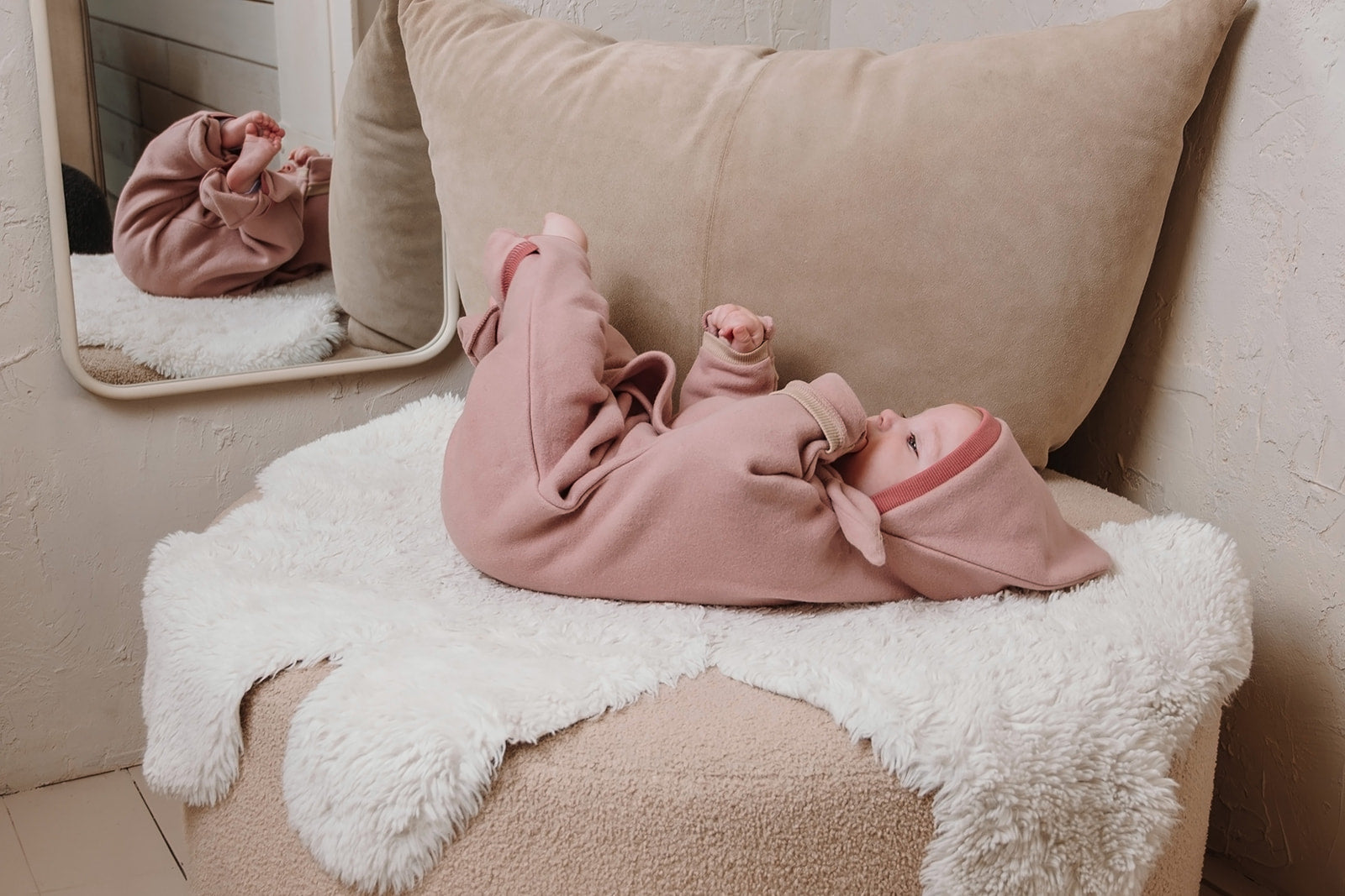 A combination of thoughtful design, soft, sustainable materials, and real-life parenting experiences. Easy to put on, comfortable for babies, and beautiful to look at. And: lovingly crafted in the EU.