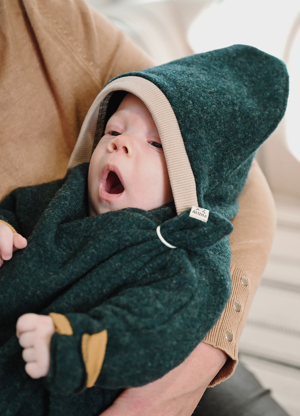 "Der Overall ist in Sekunden angezogen – ganz ohne Tränen. Perfekt für kurze Wege oder spontane Gänge vor die Tür. Und auch bei langen Spaziergängen in der Trage: einfach ideal – warm, weich und super bequem."
